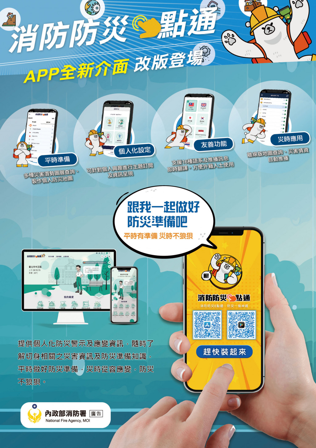 宣導內政部推廣全民使用「全民防災e點通網站」及「消防防災e點通APP」